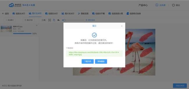 等待处理进度完成至100%,会有一个提示框提示完成处理,默认保存在电脑桌面。
