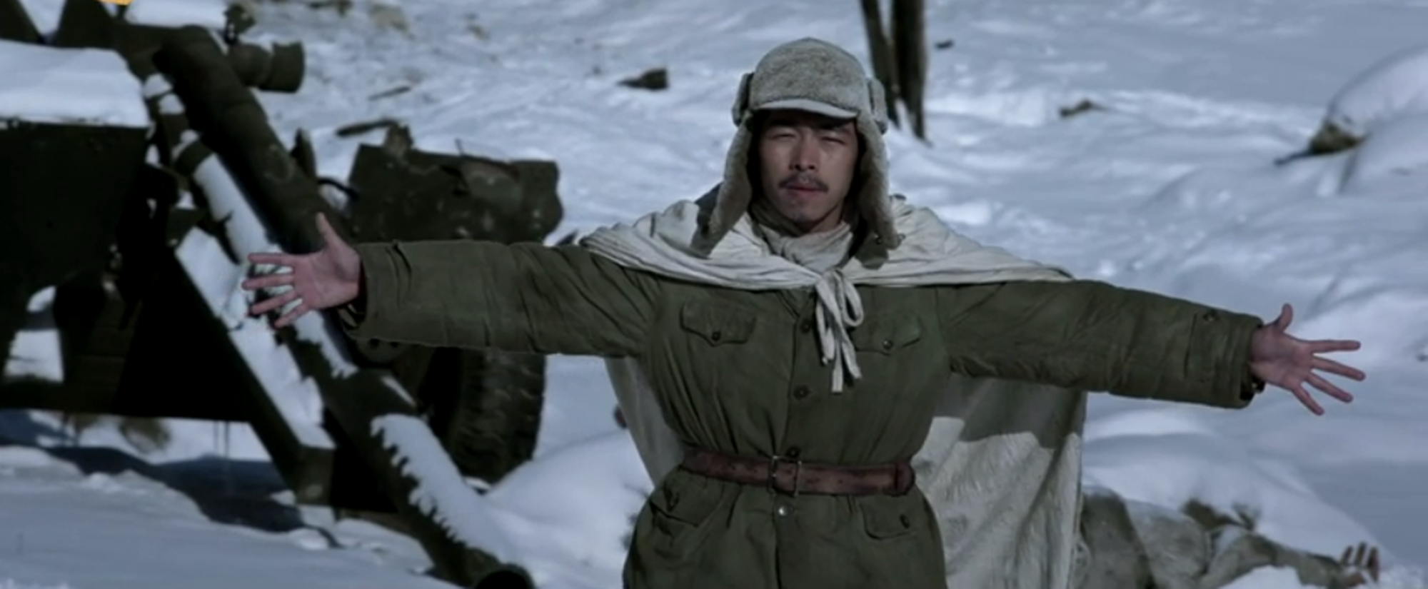 张艺谋肯定知道改名之后影片的吸引力大打折扣,但他还坚持这样做,这是一种大师的自信:我让你两先,照样赢你!第三个减法:故事背景张艺谋不是没拍过战争片,《英雄》《满城尽带黄金甲》都是场面宏大的战争大戏。在拍摄抗美援朝题材时,其实是有很多热门的战役可以拍摄的,如上甘岭战役、长津湖战役等等,如果张艺谋愿意,他完全可以把当年的那套“广场操”模式移植过来,拍出极具冲击力的战争大片。