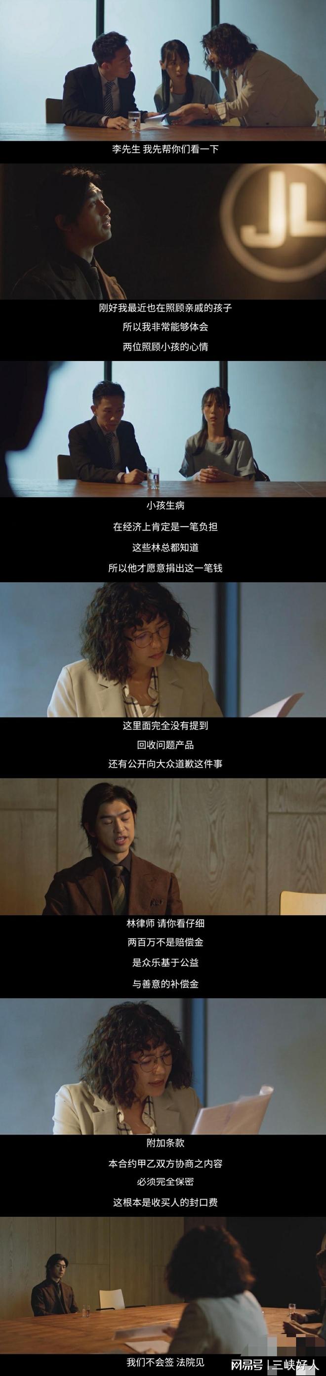 李家夫妻因为有害果冻向食品公司提起诉讼,刘浪作为被告方的代理律师提出了一个解决办法,提供200万封口费用于救治原告夫妇的孩子。然而林小颜作为原告的代理律师坚决不同意,她认为曝光无良企业是对社会有益的事情,这是必须要维护的正义。