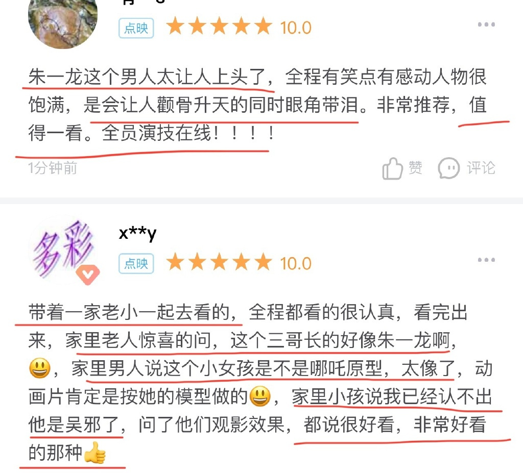 网友表示:挺好看的真的,很感动,外婆带大的孩子们是很能代入的,等到后面上映了,大家去看的时候一定要带纸巾奥,因为泪点总是猝不及防!