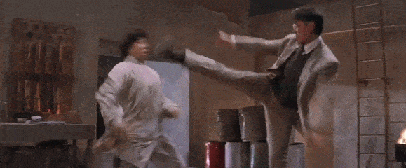 而当都有着硬功夫的演员直接对位时,往往能打造出一战封神的精彩打斗场面,例如在《杀破狼》中甄子丹与吴京的小巷死斗,堪称教科书级别的器械搏斗。《醉拳2》结尾成龙与大boss卢惠光的决战也是充分的展示了卢惠光惊人的腿脚功夫。