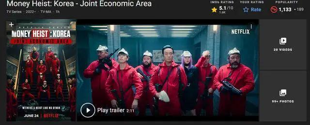 近日韩版《纸钞屋》终于上线了,不过口碑和美版相差甚远,在IDM只有5.1分,烂番茄爆米花指数仅48%。