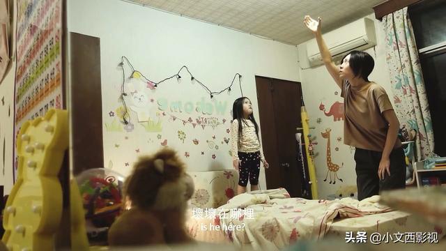 李若男的女儿指着空荡荡的屋顶,说有“坏坏”在上面,她也很配合女儿,伸手去牵屋顶的“坏坏”,氛围很是诡异。