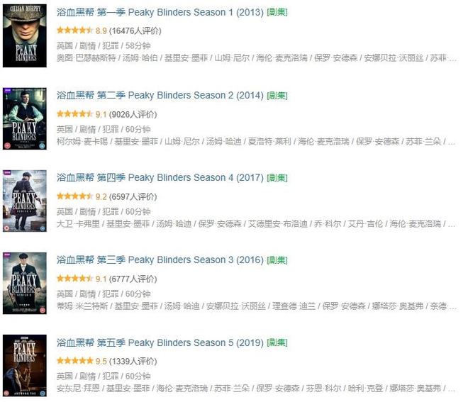 每一季都只有六集,并且在五季播出后口碑一路攀升:8.9、9.1、9.1、9.2、9.5